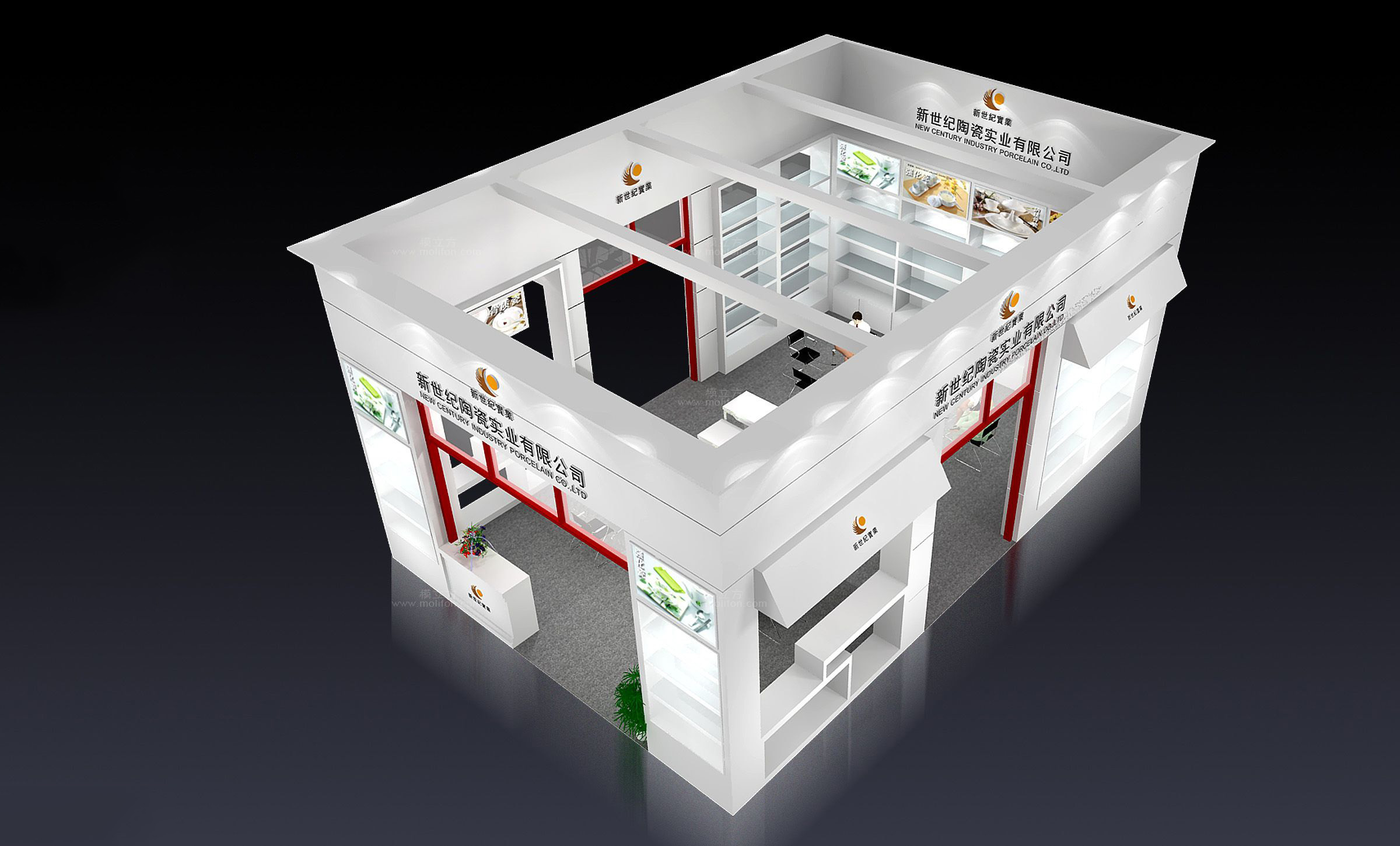 契合世紀(jì)新世紀(jì)陶瓷的品牌形象和產(chǎn)品特性,采用矩形結(jié)構(gòu),再搭配燈具燈光的效果,襯托出展位大氣、豪華的氛圍,突出一種簡(jiǎn)約、時(shí)尚的品味。