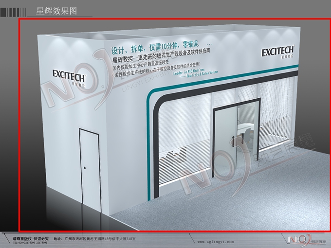 契合星輝數(shù)控的品牌形象和產(chǎn)品特性,采用框型結(jié)構(gòu),再搭配燈具燈光的效果,襯托出展位簡(jiǎn)約、便捷的氛圍,突出一種精致、簡(jiǎn)約的時(shí)尚品味。