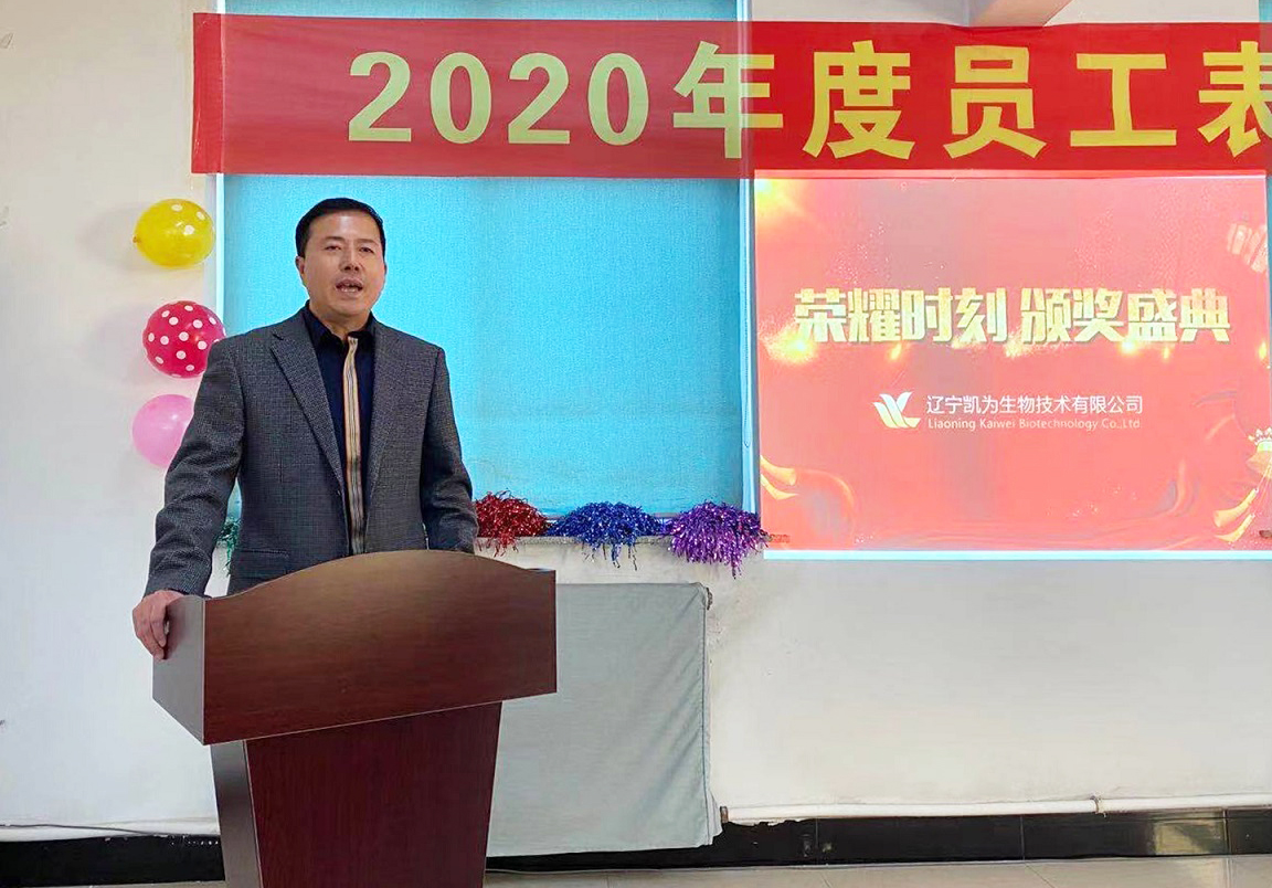 2021年1月9日,遼寧凱為生物技術(shù)有限公司2020年員工表彰大會于公司總部會議室成功召開,公司各級領(lǐng)導(dǎo)及全體員工應(yīng)邀參會。表彰大會首先由公司總經(jīng)理王鐵良致2021年新年賀詞,隨后分別頒發(fā)了生產(chǎn)部優(yōu)秀員工獎(jiǎng)、六年貢獻(xiàn)獎(jiǎng)、十年貢獻(xiàn)獎(jiǎng)和行政優(yōu)秀員工獎(jiǎng)四個(gè)獎(jiǎng)項(xiàng)。