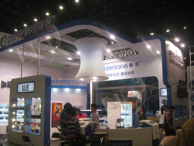 巧妙的運(yùn)用白色、藍(lán)色做搭配,著重突出品牌和產(chǎn)品的展示,使整個(gè)展位簡(jiǎn)潔大方又高端大氣。