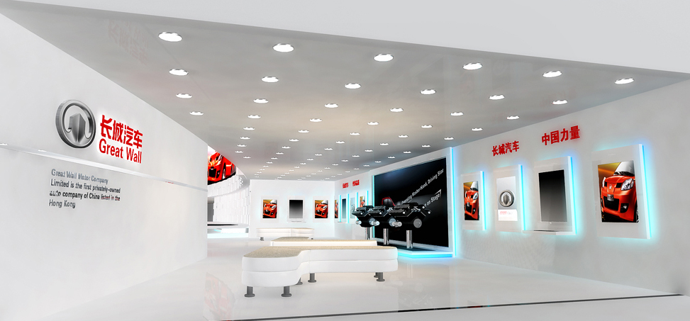 契合長城汽車的品牌形象和產(chǎn)品特性,采用矩形結(jié)構(gòu),再搭配燈具燈光的效果,襯托出展位高端、時尚的氛圍,突出一種現(xiàn)代、大氣的時尚品味。