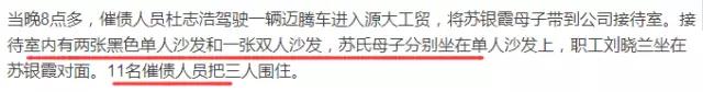事情起因是這樣的,蘇銀霞開辦的公司資金周轉(zhuǎn)遇困,不得已向吳學(xué)占借款共計(jì)135萬(wàn)元,約定月利息10%(遠(yuǎn)超法律規(guī)定的36%年利息上限)。在蘇銀霞共還款184萬(wàn)元,并將一套140平米價(jià)值70萬(wàn)的房子抵債后,“還剩最后17萬(wàn)欠款,公司實(shí)在還不起了”。結(jié)果,就遭到涉黑勢(shì)力的恐怖逼債。