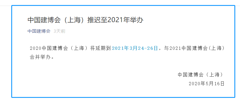 建博會設計搭建公司領藝展覽了解到,2020中國建博會(上海)將延期到2021年3月24-26日,與2021中國建博會(上海)合并舉辦。如需建博會設計請聯(lián)系領藝展覽,希望我們能在建博會搭建上為您添磚加瓦,祝各位朋友收獲多多,滿載而歸!